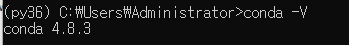 다시한번 conda -V로 버전을 확인하니 다음과 같이 4.8.3으로 업데이트 되었습니다~